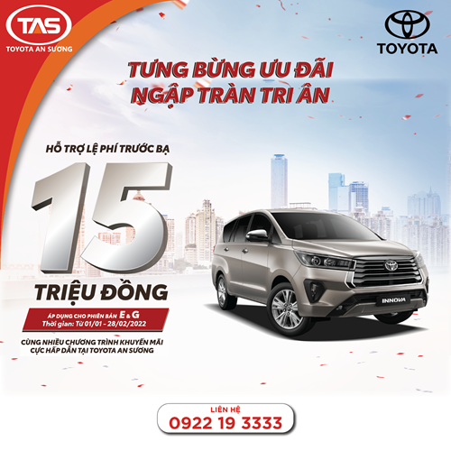 Đặc biệt, TOYOTA AN SƯƠNG đang có rất nhiều CHƯƠNG TRÌNH ƯU ĐÃI dành cho quý khách hàng khi liên hệ trực tiếp đến Đại lý.