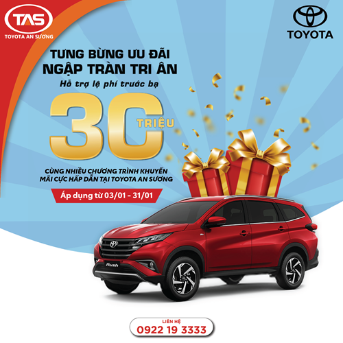 Năm mới đến là thời điểm rất thích hợp để rước một chiếc ô tô "vi vu lướt phố", nay lại càng hợp lí hơn với vô vàn ưu đãi hấp dẫn Toyota An Sương dành tặng riêng cho Quý khách hàng:
