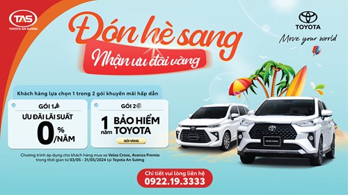 Chương trình diễn ra từ ngày 3/5 đến hết 31/5/2024, áp dụng cho tất cả các phiên bản của Veloz Cross & Avanza Premio. Hãy đến ngay Toyota An Sương để ring xế cưng nhận quà khủng!