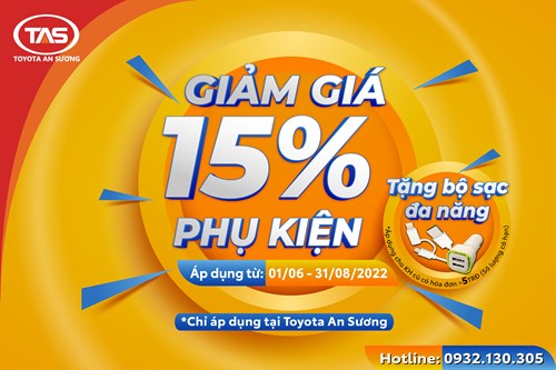 🎊Toyota An Sương và Toyota Trường Chinh xin thông báo đến quý khách hàng chương trình【GIẢM 15%】GIÁ PHỤ KIỆN (*) đối với các sản phẩm sau đây: