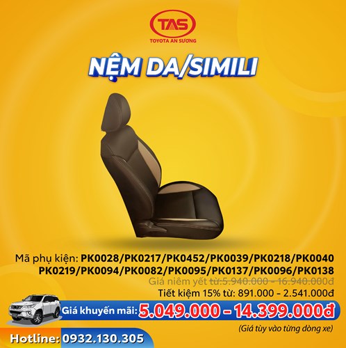 (*) Chỉ áp dụng khuyến mại đúng mã phụ kiện được ghi trên hình và mua tại trụ sở Toyota An Sương và Toyota Trường Chinh.
