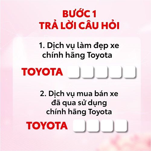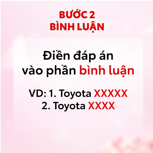B2: Trả lời câu hỏi & điền đáp án vào phần BÌNH LUẬN theo cú pháp "1. Toyota xxxxx - 2. Toyota xxxx".