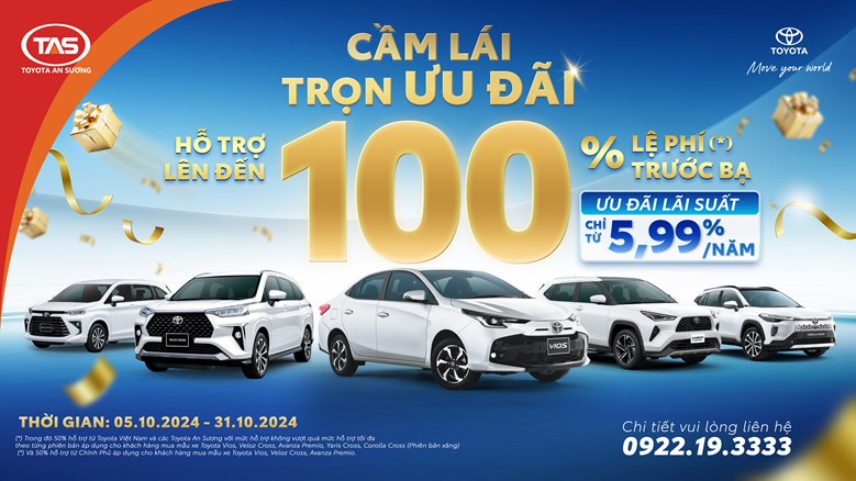 Mùa ưu đãi đã trở lại với những chương trình không thể bỏ lỡ! Tháng 10 này, Toyota Việt Nam cùng Toyota An Sương mang đến những ưu đãi hấp dẫn, giúp bạn dễ dàng lái ngay chiếc xe mơ ước!