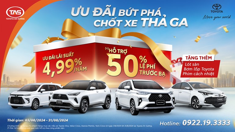 Toyota An Sương giới thiệu chương trình khuyến mãi bất ngờ dành cho quý khách hàng khi mua xe từ ngày 03/08/2024 - 31/08/2024: