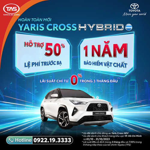 ✨ Thời điểm vàng để rinh xế xịn đồng hành cùng những chuyến đi hứng khởi, sẵn sàng cho mọi cung đường sắp tới. Chào mừng tháng 10, Toyota An Sương triển khai chương trình ưu đãi dành cho Quý khách hàng khi mua xe Yaris Cross:
